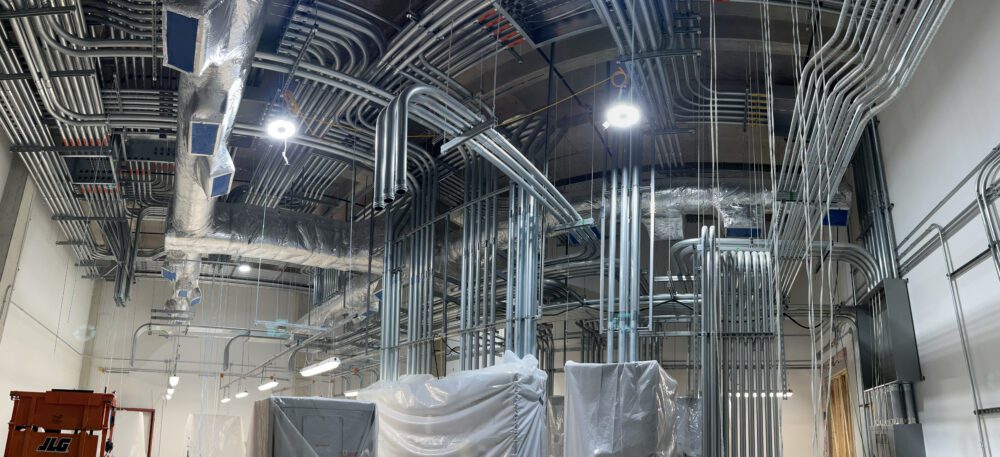Pre-construction improves installation efficiency and helps keep projects on schedule by ensuring the right components arrive at the jobsite accurately built, assembled, tested, and delivered just in time. Our Prefabrication Team collaborates closely with Project Management, BIM, and Engineering to identify opportunities that boost productivity, streamline project timelines, reduce labor costs, minimize waste, and enhance safety. By transforming detailed BIM models into complete electrical work packages for just-in-time construction, we deliver assemblies only when they are needed. This approach increases quality and control, eliminates onsite storage risks like damage or theft, and speeds up installation by reducing how often materials must be handled.